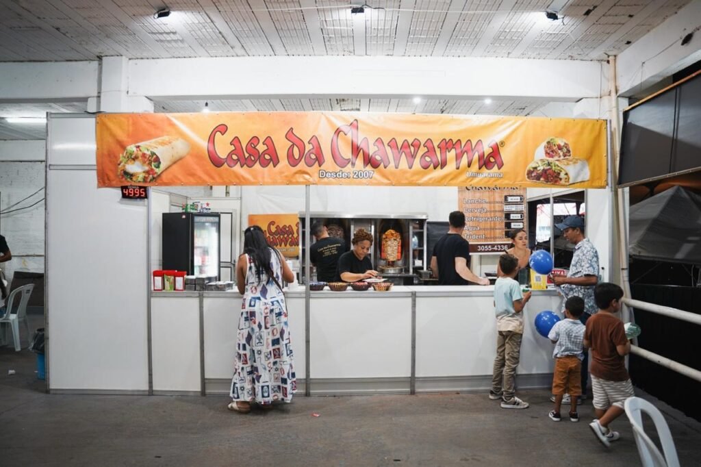 “É uma relação de confiança construída ao longo dos anos. O público reconhece, valoriza e muitas vezes já nos procura”, afirma Lourdes Faria, proprietária da Casa da Shawarma, presente há 17 anos na feira.